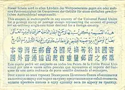 - About international reply coupons Weltpostverein (englisch)