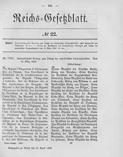 Der Vertrag wurde am 14. März 1884 in Paris abgeschlossen und bezweckt den Schutz von Seekabeln. Er ist bei der französischen Regierung als Depositar hinterlegt.