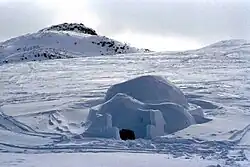Die Winterzeit verbrachte man in einzelnen oder durch Tunnel miteinander verbundenen Iglus. Diese Schneehäuser, zu deren Aufbau man auf Schnee einer ganz bestimmten Konsistenz angewiesen war, erhielten im Prinzip die gleiche Einteilung wie die Zelte. Wichtiges Element war ein gegenüber dem inneren Wohnbereich tiefer gelegter Eingangstunnel, der als Windfang und Kältefalle diente, um die schwerere Kaltluft weniger leicht in den Wohnraum eindringen zu lassen. Als zusätzlicher Schutz vor der Kälte wurde der Schlafbereich überdies durch eine Schneeunterlage höher als der Wohnsektor gelegt.