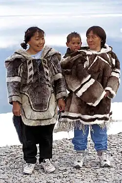 Die Winterkleidung war so konstruiert, dass die Körperwärme möglichst gut genutzt wurde; praktisch gab es kaum Öffnungen, durch die die Luft nach außen entweichen konnte. Als Material bevorzugt wurden neben Robbenfellen in erster Linie Karibufelle, in Grönland Eisbärenfelle. Sie wurden zum Erhalten einer Warmlufthülle weit geschnitten und fast überall in zwei Schichten getragen – innen mit der Haarseite nach innen, außen mit der Haarseite nach außen; im Sommer trug man nur die innere Schicht. Charakteristisch war auch eine an der Innenschicht befestigte Kapuze, die das Austreten von Warmluft am Hals verhinderte. Den Müttern diente ein besonderer Kapuzenteil ihres Amauti (Frauen-Parka) überdies als Transportsack für die Kleinkinder.