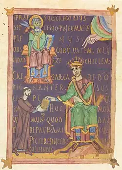 Bereits im fränkischen Reich besaßen die fränkischen Könige das Recht auf Einsetzung der Bischöfe und Äbte. Dieses Recht begründeten sie mit dem Eigenkirchenrecht, das einem Grundherrn mit Gotteshäusern auf seinem Gebiet erlaubte, auf deren Verwaltung Einfluss zu nehmen.[27] Ab dem 10. Jahrhundert bemühten sich die Nachfolger der Karolinger im Ostfrankenreich um eine Fortsetzung der Politik ihrer Vorgänger, die „stets nach eigenem Ermessen über die Bischofssitze verfügt [hatten]“.[28], aber auch um eine engere Kopplung der Reichs- und Kirchenverwaltung aneinander. Maßgebliche Schritte in diesem Bestreben waren die Einrichtung der Hofkapelle durch König Heinrich I., die Äbte und Bischöfe in die Verwaltung des Reichs einbezog, sowie die Schöpfung des (heute) sogenannten „ottonisch-salischen Reichskirchensystems“ durch Otto I. aus dem Haus der Liudolfinger.[29] Der Begriff suggeriert, dass „mit diesem System schlagartig und planmäßig Neues geschaffen worden [ist]“.[29], tatsächlich war es jedoch nur das Ausformen, Ausstrukturieren und Ausgestalten von „Althergebrachte[m] und längst selbstverständlich Gewordene[m]“.[29] Das Ziel der Liudolfinger war es gewissermaßen, die Bischöfe zu gefälligen Werkzeugen im Kampf gegen ihre Widersacher umzuformen. Hierfür erweitern Otto und seine Nachfolger die Befugnisse, Privilegien und Territorien der geistlichen Herren erheblich und banden die Bischöfe damit und durch gezielte Ernennungen stärker an die königliche Macht.[30] Einige wenige Kleriker verurteilten dieses Handeln bereits im 10. Jahrhundert, insgesamt war die ottonische Kirchenpolitik unter den Klerikern jedoch allgemein akzeptiert, wobei Otto I. besonders seine Fortschritte in der Slawenmission zugutekamen.[31] Der große Konflikt zwischen Sacerdotium und Imperium sollte erst unter den salischen Herrschern über Mitteleuropa hereinbrechen.