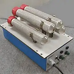 Nachgeschaltete Katalysatoren und Reaktionskammern sollen Schadstoffe minimieren. Die Isolatorröhre wird hierbei mit Betriebsspannungen von mehr als 7 kV beaufschlagt und das dabei erzeugte Ozon reagiert direkt im nachgeschalteten Katalysator, mit der Schadstofffracht im Luftstrom und mit dem Katalysator selbst.[10] Der Katalysator wird bei dieser Reaktion verbraucht. Neben dieser katalytischen Reaktion durch eine Ozon bildende Isolatorröhre gibt es auch Ozongeneratoren, die bei mehr als 10 kV gleiche oder auch bessere Abbauraten erzielen.