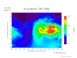 Der Elektronengehalt (TEC) der Ionosphäre am 12. Februar 2007 um 09:00 UT = 10:00 MEZ