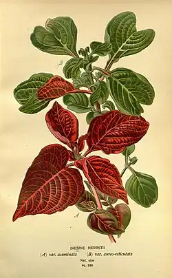 - ↑ a b c Iresine herbstii. In: POWO = Plants of the World Online von Board of Trustees of the Royal Botanic Gardens, Kew: Kew Science, abgerufen am 7. Mai 2025.