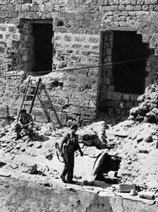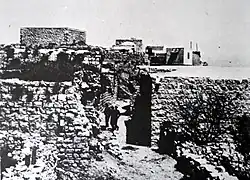 Am 4. Mai 1947 befreite die Irgun gewaltsam 200 Gefangene aus der Zitadelle von Akkon, die von den Briten als Gefängnis genutzt wurde.[10][12] Zu diesem Zweck sprengten sie von der heute in Erinnerung dieses Ereignisses Rechov Portzej ha-Mivtzar (רְחוֹב פּוֹרְצֵי הַמִּבְצָר ‚Straße der Einbrecher in die Festung‘; شارع اللص في القلعة, DMG Šāriʿ al-Laṣi fī al-Qalʿa) genannten Straße zugemauerte Öffnungen in der südlichen Mauer auf.[13] Das Irgun-Kommando hatte sich unbemerkt über das Dach des Ḥammāms gegenüber vom Gefängnis genähert.[14] Dabei wurden 41 Häftlinge befreit, die zu Irgun oder Lechi gehörten, und 214 weitere, vor allem arabische Gefangene, entkamen.[15][10] Inhaftierte Anhänger der Hagana lehnten die gewaltsame Befreiung ab und verblieben im Gefängnis.[15] In dem Gefecht, das sich außerhalb des Gefängnisses zwischen Einbrechern sowie palästinensischer Polizei und britischen Armeetruppen entwickelte, wurden drei der Eindringlinge und sechs der fliehenden Häftlinge getötet.[13] Dreizehn wurden gefangen, drei von ihnen – Avschalōm Ḥabīb (אַבְשָׁלוֹם חָבִּיבּ; 1926–1947), Me'īr Naqqar (מֵאִיר נַקָּר; 1926–1947) und Jaʿaqov Imre Weiss (יַעֲקֹב וַייְס; 1924–1947) wurden angeklagt und zum Tode verurteilt.[13]