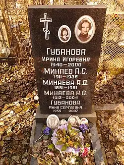Sie starb 60-jährig an Krebs und wurde auf dem Serafimowskoje-Friedhof in ihrer Geburtsstadt beigesetzt.[1]