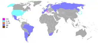 | Jahr (Spiele) | Anzahl (Länder) | Spieler (Einsätze) |