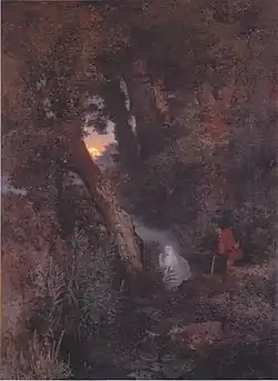 Der Maler Hermann Hendrich fertigte zwischen 1880 und 1900 bekannte Großgemälde für die Walpurgishalle auf dem Hexentanzplatz (bei Thale im Harz) an. Darunter befinden sich mehrere Irrlichtdarstellungen.[23] Sowohl Faust I. als auch Das Märchen inspirierten Hendrich zu seinen Werken. In seinen Bildern werden die Irrlichter als zierliche, annähernd humanoide und leuchtende Wesen dargestellt.