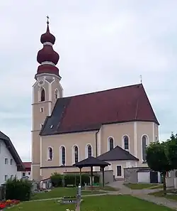 Die heutige gotische Kirche Maria Himmelfahrt, eine Filiale von Straßwalchen, datiert 1408. Sie war im Spätmittelalter eine wichtige Wallfahrtskirche und wurde prachtvoll ausgestattet, so mit geschnitzten Türen der Bauzeit und den Altären von Meinrad Guggenbichler in den 1680ern. Zum denkmalgeschützten Ensemble der Kirche mit ihrem ummauerten Friedhof gehören auch zwei keine Bildstöcke (Schmerzensmutter und Grabstätte Herzog).