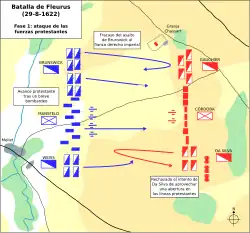 - ↑ Karl Freiherr von Reitzenstein: Der Feldzug des Jahres 1622, am Oberrhein und in Westfalen, bis zur Schlacht von Wimpfen Heft I und II (München 1891, 1893), Heft II, S. 121 (online).