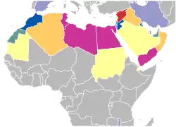 Im Dezember 2010 und im Frühjahr 2011 kam es in zahlreichen arabischen Ländern zu Massenprotesten gegen die autokratisch geführten Staatssysteme; die als Arabischer Frühling bekannt wurden. Anfangs waren diese von dem Wunsch nach wirtschaftlichen Reformen, Korruptionsbekämpfung, Liberalisierung und Demokratisierung bestimmt, wandelten sich in einigen Ländern jedoch infolge staatlicher Repression zu revolutionären Bewegungen. In Tunesien und Ägypten wurden die autokratischen Herrschaftssysteme weitestgehend friedlich gestürzt.[54] In anderen Ländern erfolgten geringe bis mittlere Zusagen an die Demonstranten oder erstickten mögliche Aufstände durch Repression im Keim. In Bahrain, Libyen und Syrien reagierten die autoritären Regime mit massiver Gewalt. Während in Bahrain die Proteste erfolgreich mit staatlicher Repression und einer militärischen Intervention Saudi-Arabiens und der Vereinigten Arabischen Emirate eingedämmt wurden,[55] weiteten sie sich in Libyen[56] und Syrien zu Bürgerkriegen aus. Im Jemen trat Präsident Ali Abdullah Salih schließlich zurück, doch mündete der eingesetzte Staatszerfall und der nach wie vor bestehende Huthi-Konflikt schließlich in einen Bürgerkrieg und 2015 in eine weitgehende Machtübernahme der schitisch-islamistischen Huthi-Milizen im Land.[57]