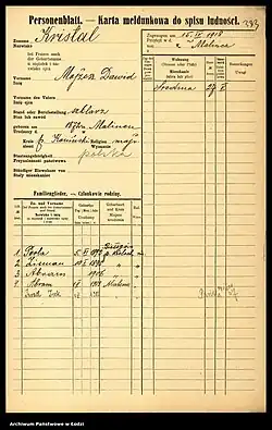 Personenblatt[1] der Familie Kristal 1918 in Łódź. Izrael Icek Kristal, geboren 1903, als Nachtrag in Position 5