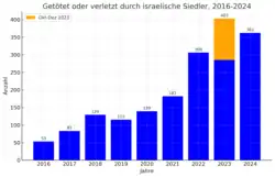 Opfer von Siedlergewalt im Westjordanland, 2016–2024[33]