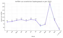 Vorfälle herkömmlicher Siedlergewalt im Westjordanland, 2023[32]