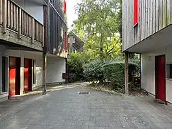 - 1991: Les Toits rouges in Saint-Dizier, Wohnanlage mit 81 Sozialwohnungen, Betonbauten mit teilweise Holzverkleidung und einem Hof[21]