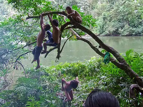 Einige Untersuchungen bei rezenten Völkern der Subtropen und Tropen kommen auf 60 bis 70, in Einzelfällen bis zu 80 Prozent Sammelnahrung (vorwiegend pflanzlich).[25] So ernähren sich süd- und südostasiatische Dschungelvölker nahezu vollständig von der Sammelwirtschaft. Einige indische Ethnien (etwa die Malapantaram und Aranandan aus Kerala) verfügen nicht einmal über Bogen oder Speere. Der Schwerpunkt liegt in den warmen Ländern selbst dort häufig auf vegetabiler Kost, wo Wild und Fische überreich vorhanden sind. Es ist anzunehmen, dass die unsicheren Beutequoten, die Risiken der Jagd und die einfache Verfügbarkeit der Sammelnahrung dabei eine wichtige Entscheidungsgrundlage sind.[3] Es gibt jedoch Ausnahmen wie etwa die Huaorani im Amazonastiefland Ecuadors, die sich primär von Fleisch ernähren. Für andere Ethnien – insbesondere des hohen Nordens – wurden als Durchschnittswerte 65 Prozent tierische Nahrung ermittelt,[26] in extremen Tundraregionen bis zu 90 Prozent. Hier steht pflanzliche Nahrung nur maximal von Mai bis September zur Verfügung.[3]
