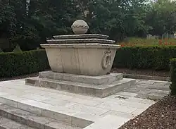 Das aus Kalkstein gefertigte Denkmal an der Kreuzung Bergstraße/Spechsart wurde in Form eines Sarkophags ausgeführt, das mit einer Kugel mit Gliederband bekrönt ist. Diese wiederum ist auf einem dreistufigen Kissen aufgelegt. An den Schmalseiten ist ein Lorbeerkranz zu sehen. Es ist nicht ebenerdig angelegt, sondern steht auf einer Plattform, die über eine dreistufige Treppe zu erreichen ist. Auch da wiederum erhebt sich der Sarkophag nochmals zweistufig. Das Denkmal ist mit einer Hecke umgeben.