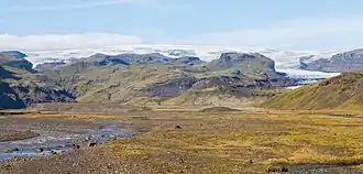Jökulsá á Sólheimasandi mit Sólheimajökull und Mýrdalsjökull