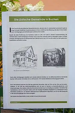Die Schule befand sich im ehemaligen Gasthaus Sonne in der Pfarrgasse 13/Ecke Haagstraße (das Gebäude besteht nicht mehr). Die jüdischen Elementarschulen wurden mit der Einführung der Simultanschulen im Großherzogtum Baden im Jahr 1876 aufgelöst. Die jüdische Schule in Buchen wurde als Religionsschule weitergeführt.