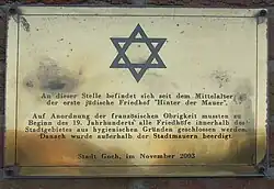 - ↑ Goch (Hinter der Mauer) In: Übersicht über alle Projekte zur Dokumentation jüdischer Grabinschriften auf dem Gebiet der Bundesrepublik Deutschland. Nordrhein-Westfalen. Jüdische Friedhöfe in Nordrhein, E-G