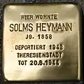 | Solms Heymann | 1858–1944 | Textilkaufmann | Tod im KZ Theresienstadt | Marktplatz 2 | |