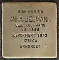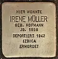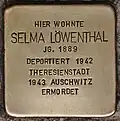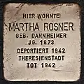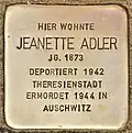 | Jeanette Adler | 1873 – ?? | Deportation in das KZ Theresienstadt, Tod vermutlich im KZ Auschwitz, genauer Todeszeitpunkt unbekannt | Hartmannstraße 5 |