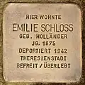 | Fanny Bloemendal | 1879–1943 | Hausfrau | Tod im KZ Auschwitz | Theresienstraße 10 |