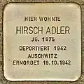 | Hirsch Adler | 1875–1942 | Manufakturhändler | Tod im KZ Auschwitz | Hartmannstraße 5 |