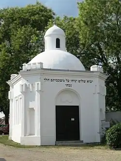 Der Saalbau im Stil des Historismus wird von einer Kuppel überwölbt, die von einer Laterne bekrönt wird. Über dem Eingang ist eine hebräische Inschrift angebracht ("Die in Geradheit gewandelt sind, kommen zum Frieden und ruhen auf ihren Lagerstätten", Jesaja 57,2).