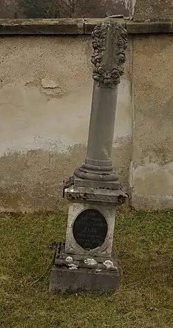 Grabstein aus den 1930er Jahren mit Gedenkinschriften für zwei Opfer des Holocaust