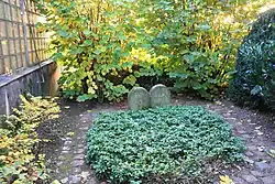 - der Doppelstein für Ester Müller (1812–1870) und Jonas Platz (1812–1854); verwittert und eingesunken.[1]