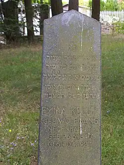 Dazu aus den Lebenserinnerungen von Peter Kohnstamm, Sohn von Dr. Felix Oskar Kohnstamm, Inhaber des Sanatoriums in Königstein (Lieder eines fahrenden Gesellen – Erinnerungen an vergangene Zeiten. Königstein i.T. 1994 S. 18): "Höchstwahrscheinlich Mutter zuliebe wurden wir Kinder als Protestanten erzogen. Aber Vater, seiner Herkunft bewusst, war der Meinung, dass mindestens sein jüngster Nachkömmling in die Tradition seiner eigenen Ahnen eingeführt werden solle. Man beschloss, dass "Tante Bertha", Vaters erste Patientin, die zu dieser Zeit in Königstein in dem koscheren Hotel Cahn wohnte und eine orthodoxe Jüdin war, mich samstags in dem Speisesaal des Hotels unterrichten solle". Bei der genannten "Tante Bertha" handelt es sich um die beigesetzte Person, der die Widmungsinschrift der Familienangehörigen Kohnstamm gilt. (Informationen von Eva Groth-Pfeifer). |
