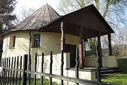 Die 1934 erbaute Friedhofshalle mit einem angebauten Taharahaus ist ein Rundbau mit hölzernem Vordach und wurde vom Jüdischen Jugendverein Ichenhausen errichtet.