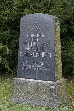Auf dem jüdischen Friedhof wurde nach 1945 ein Gedenkstein aufgestellt mit folgender Inschrift: „Friedhof der juedischen Gemeinde Meckenheim. Zum Gedenken unserer Toten aus der Zeit von 1933–1945.“