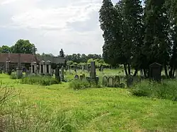Der Friedhof mit barocken und klassizistischen Grabsteinen wurde wahrscheinlich Mitte des 17. Jahrhunderts angelegt. Die beiden Grabsteine aus den Jahren 1614 und 1615, die in der Friedhofsmauer eingemauert sind, stammen von einem älteren Friedhof.[1]