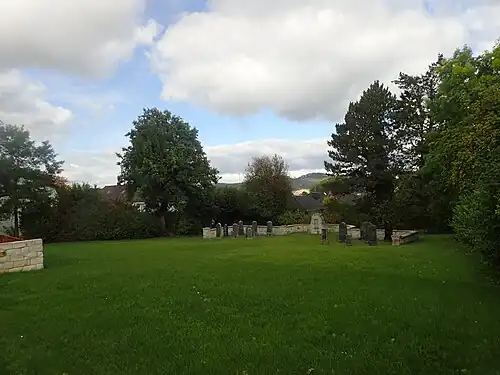 1820 konnte die jüdische Gemeinde ein 3007 m² großes Grundstück von der ev. Kirche kaufen[2] und einen neuen Friedhof dort errichten. Die ältesten Grabsteine stammen vom alten Friedhof und aus der Zeit um 1712. Die letzte Bestattung fand 1936 statt. Nach einem Gräberverzeichnis von 1938 waren damals 117 Grabsteine vorhanden, die nach den Schändungen 1924 und 1838 dann 1941 überwiegend zerstört und abgeräumt wurden.