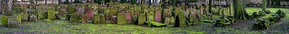 Um 1900 wurden anlässlich einer Katalogisierung der Grabstein-Inschriften durch Rabbi Markus Horovitz auf dem 11.850 m² großen Friedhofsgelände rund 6500 Grabstellen erfasst.[12] Wie sich ab 1991/92 anlässlich einer neuen Bestandsaufnahme herausstellte, waren dies nicht alle.