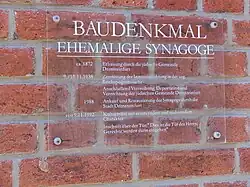 Die Synagoge von Drensteinfurt. Über dem Eingang ist die hebräische Inschrift zu erkennen.
