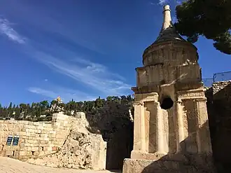 Das Grab von Abschalom (hebräisch: יד אבשלום; transliteriert: Yad Avshalom; wortgenau übersetzt: Absaloms Schrein), auch Absaloms Säule genannt, ist eines der bedeutendsten Monumente auf dem Jüdischen Friedhof am Ölberg. Es ist ein etwa 20 Meter hohes Felsengrab mit einem konischen Dach und steht im Kidrontal am westlichen Rand des Gräberfelds auf einer gedachten Linie vom Ölberg zum Tempelberg. Traditionell wird es Abschalom, dem rebellischen Sohn König Davids von Israel, zugeschrieben, was mit der jüngsten Datierung auf das 1. Jahrhundert n. u. Z. widerlegt werden konnte.[14]