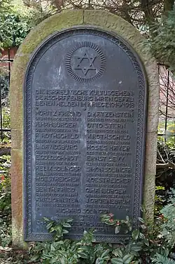 Das Kriegerdenkmal zu Ehren der im Ersten Weltkrieg gefallenen Soldaten aus der jüdischen Gemeinde Aschaffenburg befand sich ursprünglich in der 1938 zerstörten Synagoge.