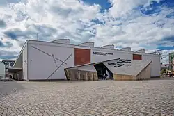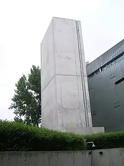 Die Architektur des zickzackförmigen Neubaus, dessen Eröffnung am 23. Januar 1999 erfolgte,[20] zeichnet sich durch eine Titan-Zink-Fassade, ungewöhnlich geformte Fenster, viele spitze Winkel in den Wänden, geneigte Böden und grauen Sichtbeton aus. Durch den Eingangsbereich im Altbau gelangen Besucher über eine schwarze Schiefertreppe ins Untergeschoss des Neubaus und von dort aus zur Hauptausstellung des Museums sowie kleineren temporären Ausstellungen.