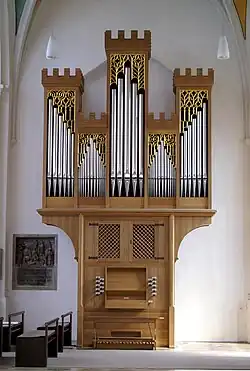 II/P | 17 | Neubau Chororgel im historischen Gehäuse von Hans Wolff Schonat (1658) → Orgel |