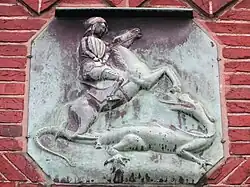 Einen optischen Zentralbereich in Form einer Grünanlage bildet der Sankt-Jürgen-Platz, mit dem daneben liegenden Bremerplatz, oberhalb des Hafermarktes. Am Sankt-Jürgen-Platz befinden sich ein asiatisches Schnellrestaurant mit Lieferservice und es befand sich dort auch lange Zeit eine Apotheke namens Adler-Apotheke.[10] Der markante Adler der Apotheke befindet sich weiterhin gut sichtbar zum Platz über dem Eingang des Eckgebäudes. Der Bremerplatz dient heute als Spielplatz. Am Sankt-Jürgen-Platz laufen einige Busverbindungen vom Twedter Plack Richtung Innenstadt zusammen; zum einen die Stadtlinien und die Regionallinie aus Glücksburg über das Stadion, zum anderen die (ehemaligen) AFAG Linien über Engelsby.
