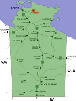 Jabiru ist eine Stadt im australischen Bundesstaat Northern Territory mit etwa 760 Einwohnern.[1] Die Stadt ist vom Kakadu-Nationalpark umgeben.