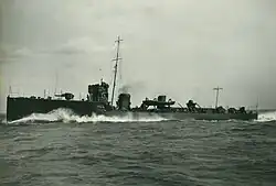 - ↑ Baunummer 557, tauschte mit dem J-Auftrag von Thornycroft den Namen und lief schon als Javelin vom Stapel