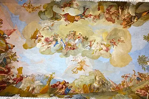 - Deckenfresko Allegorie des Tages, 1719, Badenburg im Park von Schloss Nymphenburg