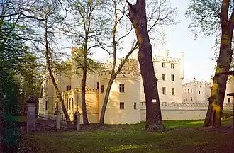 Die nachfolgenden Hohenzollernherrscher bevorzugten andere Reviere oder fanden kein Interesse an der Jagd, bis Friedrich Wilhelm IV. das Schloss 1840 wiederentdeckte. Auf den Mauern der verfallenen Jagdburg ließ er nach Plänen des Architekten Friedrich August Stüler ein Schloss in den Formen der englischen Neugotik errichten. 1843/44 erfolgte durch Stüler der Umbau des Corps de Logis. Dieses Haupthaus mit quadratischem Grundriss wurde viergeschossig aufgestockt. Ein runder Treppenturm, der dem Gebäude vorgelagert ist, überragt alle Bauten des Geländes. Durch Umbau des hohen Torhauses im Osten und der vier Ecktürme der Ringmauer erhielten die Bauten eine stilistische Anpassung in der neugotischen Form. Alle Gebäude schließen am Dachrand mit einem Zinnenkranz ab. Vermutlich in den Jahren 1851 bis 1853 erfolgte nach Stülers Plänen der Umbau des Speisesaals und der Küche. Die Leitung der Arbeiten übernahmen der Bruder des Architekten, Bauinspektor Karl Askan Stüler, und der Magdeburger Baurat Karl Albert Rosenthal.