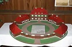 Emanuel Filibert von Waldstein ließ es für seine Frau, die Prinzessin Marie Anna Theresia von Liechtenstein (1738–1814), durch J. M. Rüttig aus Bílina (Bilin) im Jahr 1761 bis 1767 erbauen. Die einzelnen Gebäude bilden einen Kreis, der sich aus Barockschlösschen, Forsthaus, Pförtnerhaus, den Ställen und Wagenschuppen bildet, und sie bestehen sichtbar aus Holz. Nach Südosten führte eine schnurgerade Allee zum Forsthaus Jiřík (Georgshöhe) am Wieselstein. Auf dem Gelände wurden im Jahre 1848 unter anderem Wapiti-Hirsche gezüchtet. Das gesamte Objekt, heute 1980 Hektar groß, wurde 1923 vom tschechischen Staat übernommen.