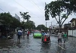 Schwere Regenfälle führen während des Monsuns immer wieder zu Überschwemmungen in Jakarta.[8] Anfang Februar 2007 standen dreiviertel der Millionenstadt unter Wasser, Hunderttausende Menschen wurden obdachlos, es wurden 80 Todesopfer gezählt.[9] Damit übertraf das Hochwasser die Flutkatastrophe von 2002, bei der 21 Menschen starben und mehr als 300.000 obdachlos wurden.[10] Auch 2013 und 2020 ereigneten sich katastrophale Überschwemmungen.[11]