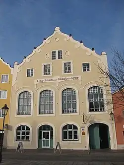 Der Jakobmayer ist ein denkmalgeschütztes Gasthaus mit Kulturzentrum am Unteren Marktplatz in Dorfen in Oberbayern.